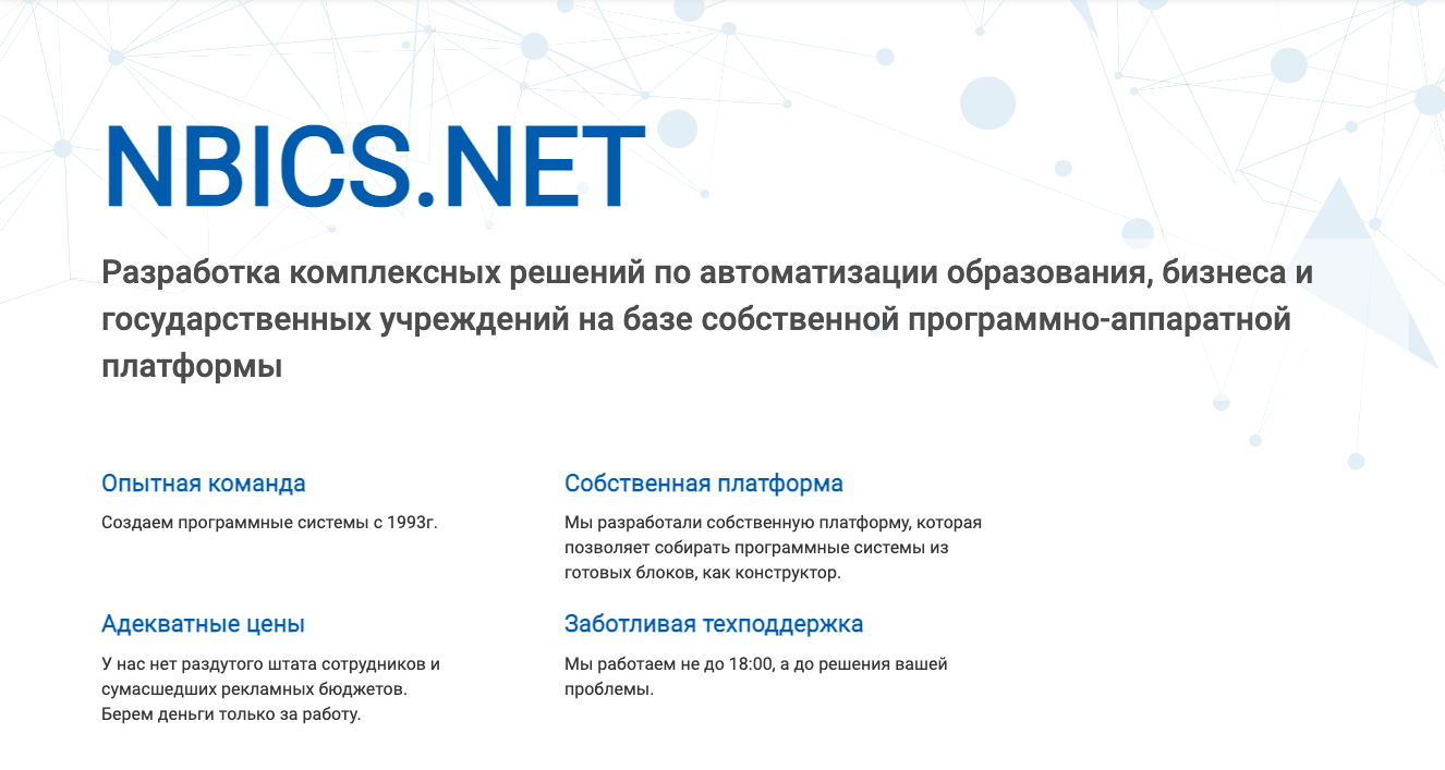 На этой странице Вы можете ознакомиться с решениями, которые возможно использовать на платформе NBICS.NET, а также найти шаблоны страниц, которые можно настроить под Ваши цели.